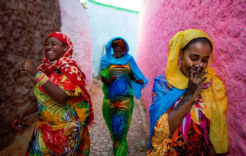 Today we drive to Harar on the way we will visit the town of Aweday famous as the site of the country’s largest chat market and farming place (an stimulating plant). Harar is a walled city. The city walls are pierced by 5 gates topped by 25 towers. The 16th century mosque with its slender minaret and the narrow streets lined with small shops all give the impression of having wandered into a city from the Arabian nights. In the evening, we will go to one of the gates of the Harar wall to see the Hyena Man feeding his hyena friends.
