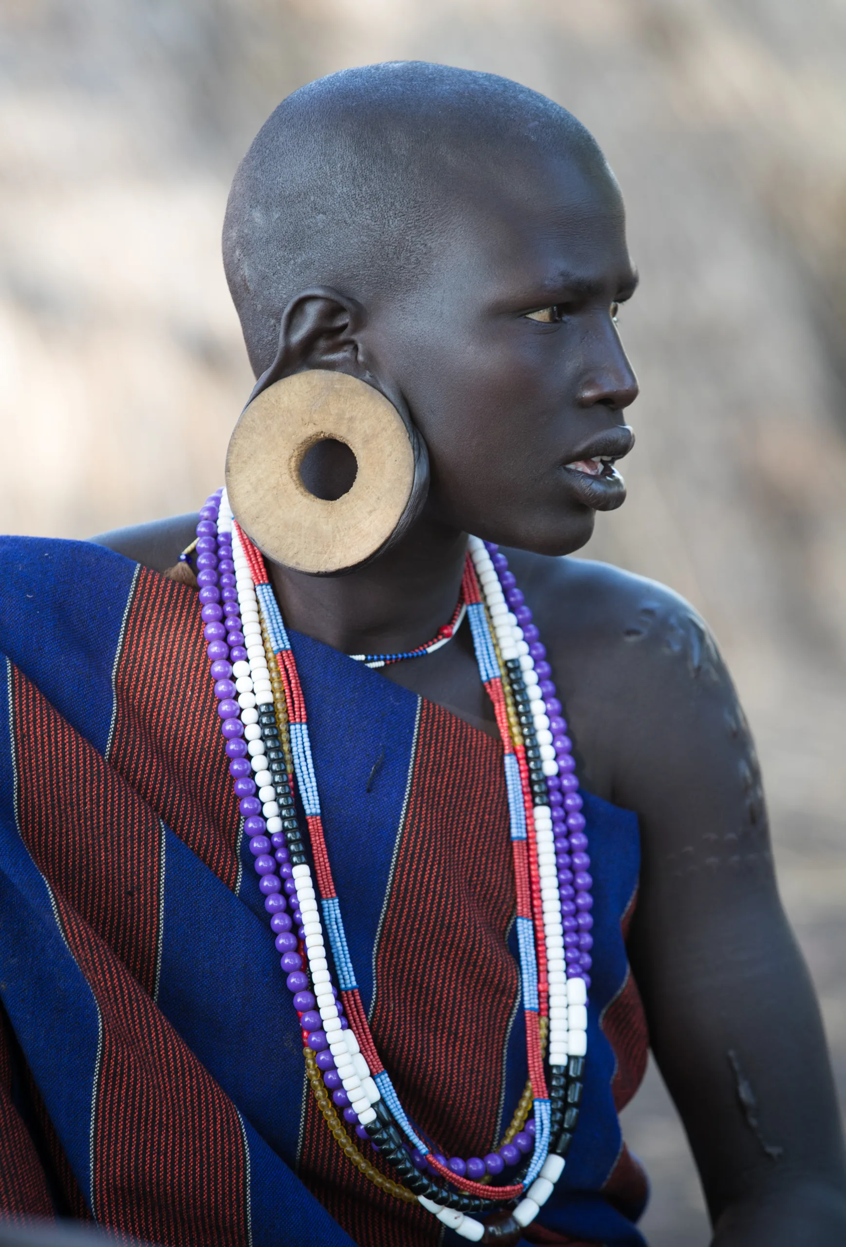 Today, embark on a day excursion to Mago National Park to visit the Mursi village, known for being one of the most traditional ethnic groups. The Mursi reside in simple huts constructed from straw leaves. Women often adorn their significantly stretched lower lips and earlobes with terra cotta, while men are notable for their distinctive hairstyles. Body scarification is common, and many women wear lip plates; a larger lip plate signifies a higher value for marriage. The plates are removed during eating and sleeping, and women can be recognized by their long, distended lips.